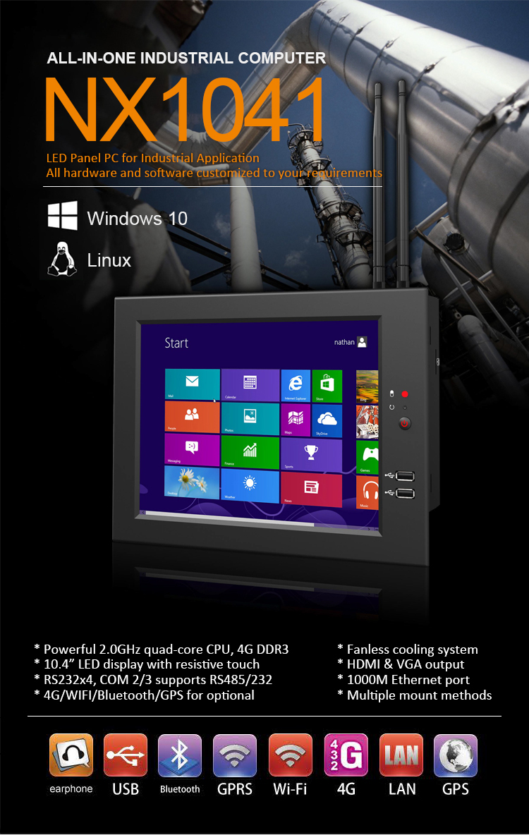 Rich resource working with powerful lntel CPU processor, which applied in different industrial fields. For instance, Intelligent industrial control system, electric power industry, electronic assembly line, numerical control machine, coalmine acquisition, fleet management, large warehouse management, manufacturing, retail, portable medical device, Human-machine interface, catering and entertainment, port terminal, agriculture machine, etc.