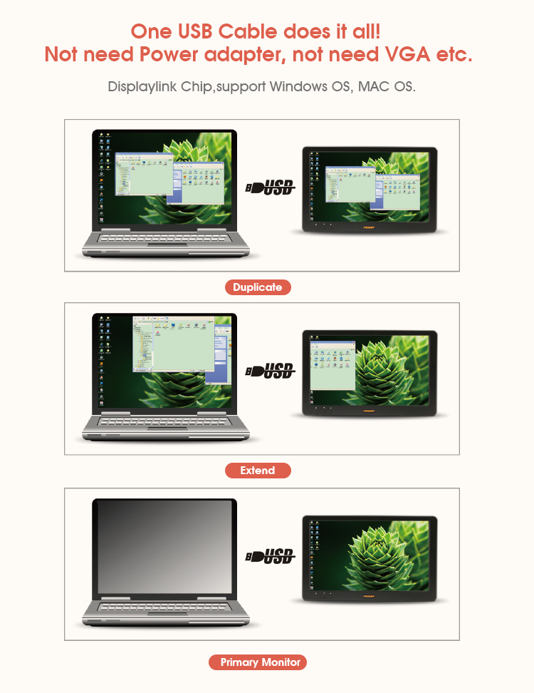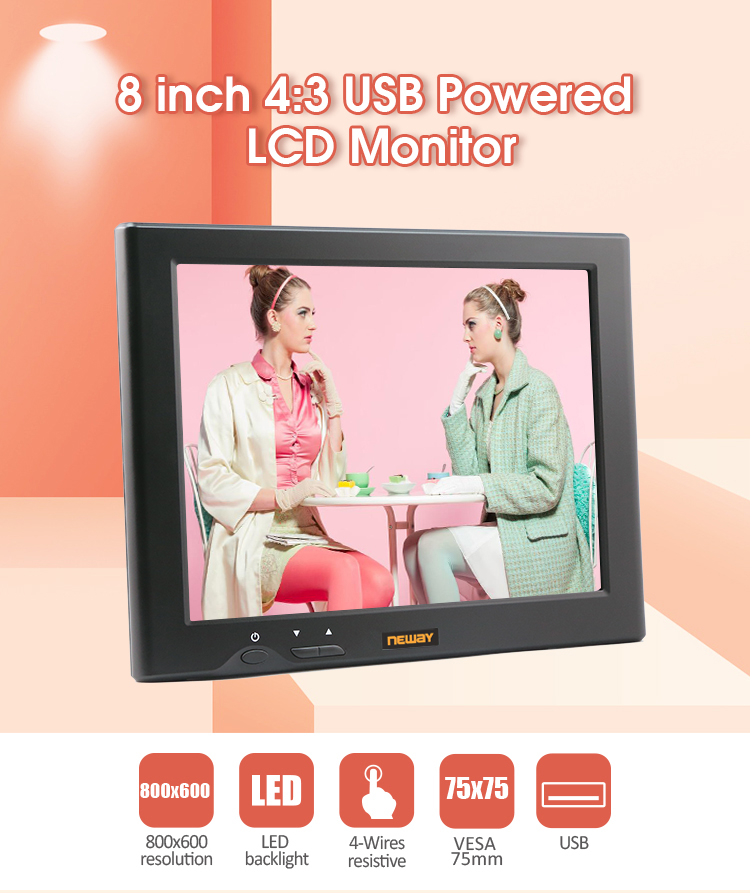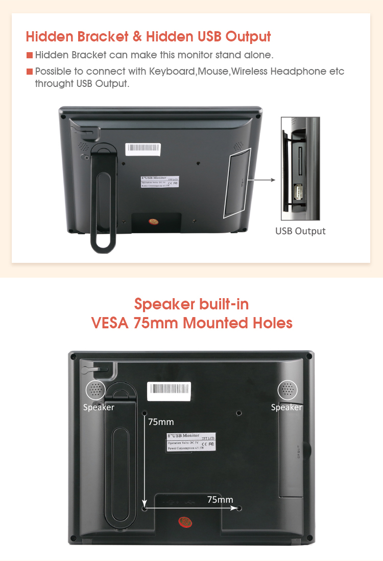 * 8” 4:3 TFT LCD USB Powered Monitor