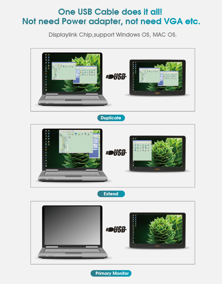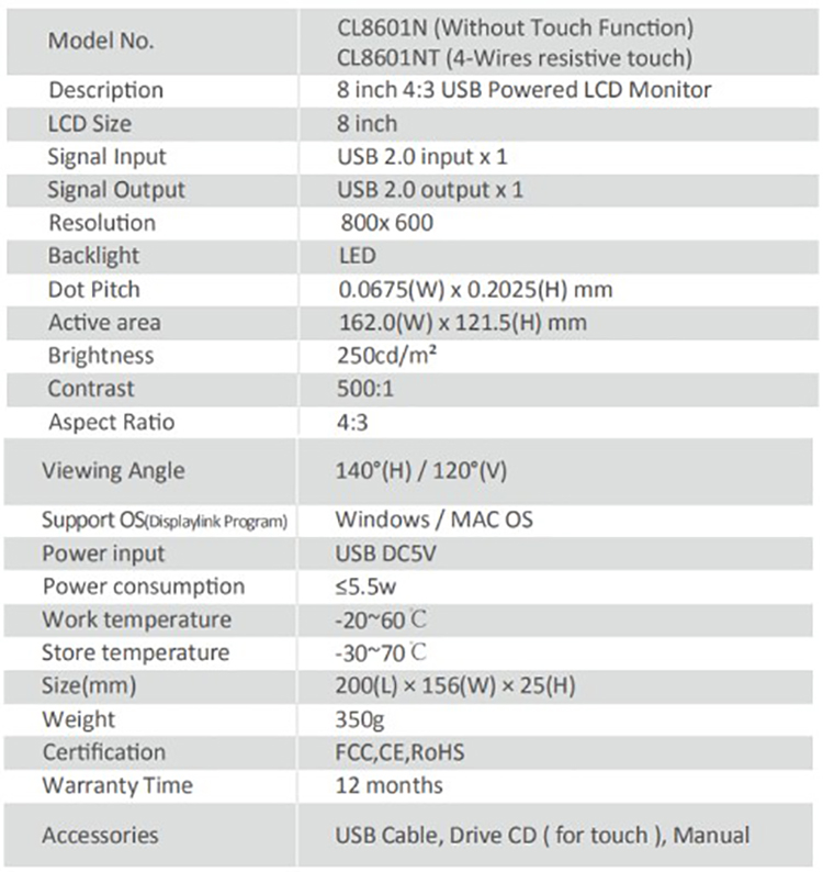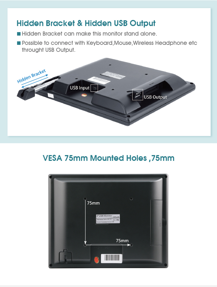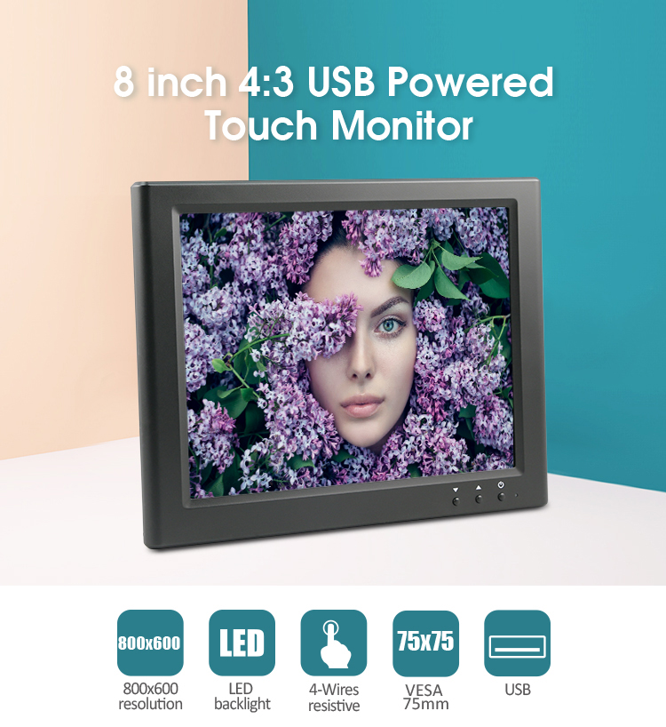 * 8” 4:3 TFT LCD USB Powered Monitor