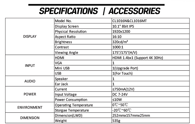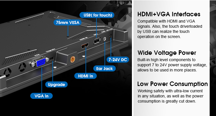 * HDMI, VGA, USB for Capactive Touch(Optional)