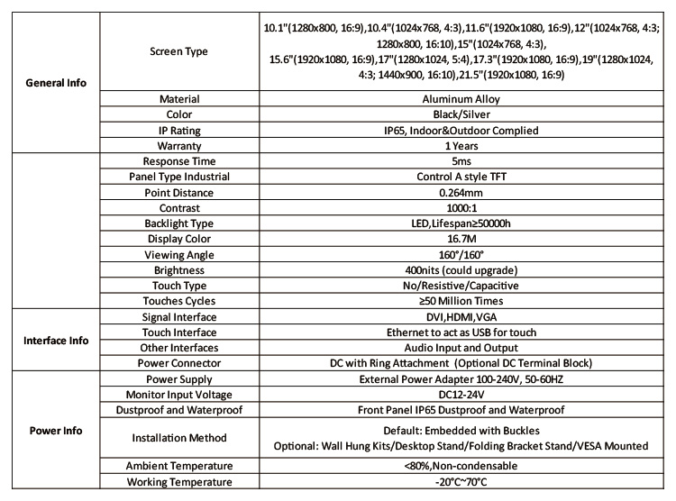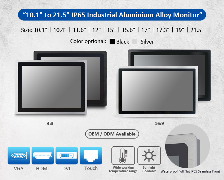 * 10.1" to 21.5” available, 4:3 or 16:9 Aspect Ratio Screen
