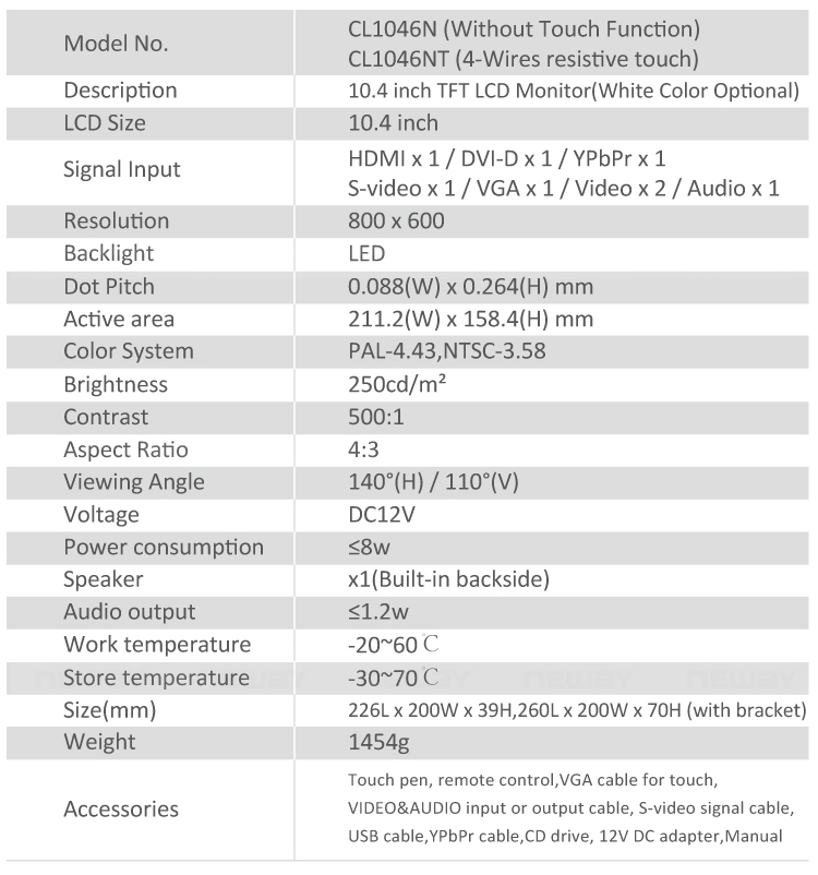 Touch monitor, durable clear and rich color brand new screen with long working life. Rich interface can fit various project and working environment.Moreover, flexible applications would be applied to various environment, i.e. commercial public display, external screen, industrial operation and so on.