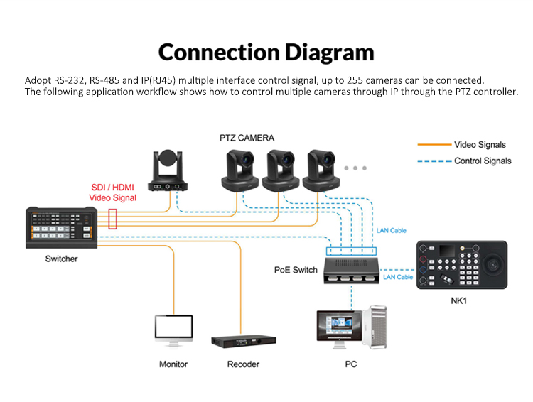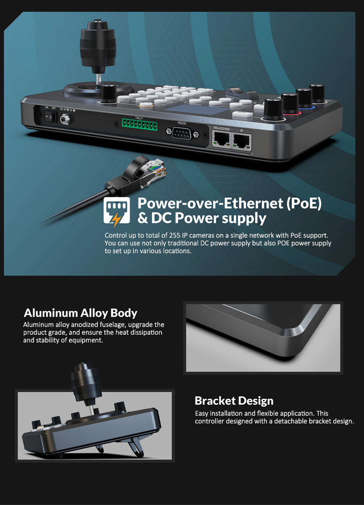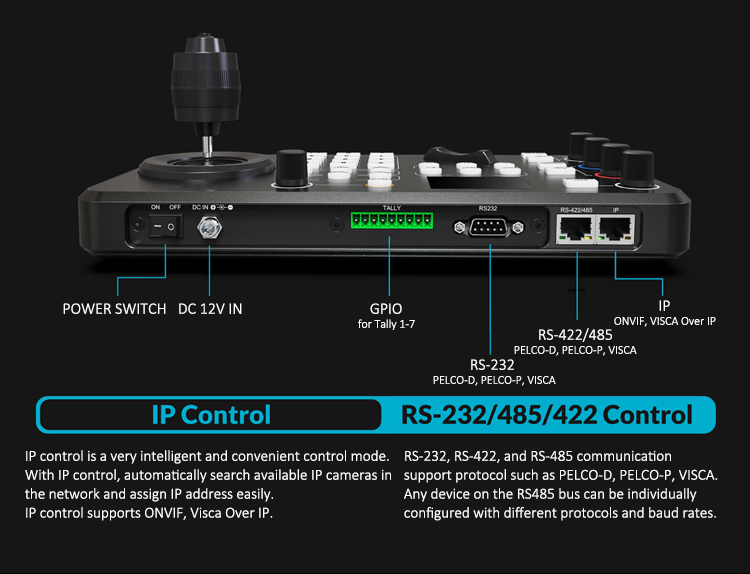 * Cross protocol mix control with IP/ RS 422/ RS 485/ RS 232