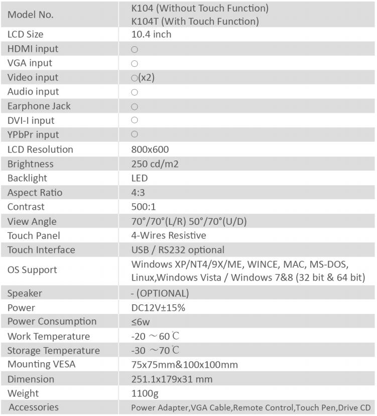 * 10.4 inch TFT LCD panel with resolution 800x600