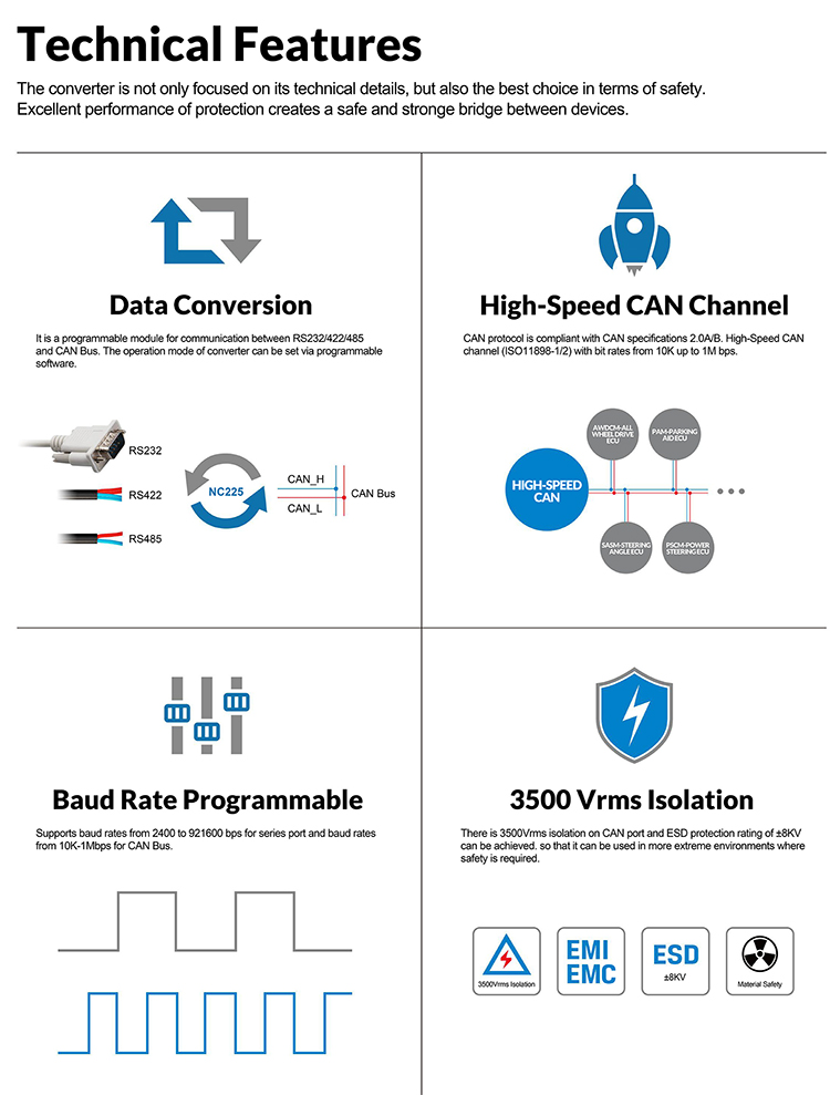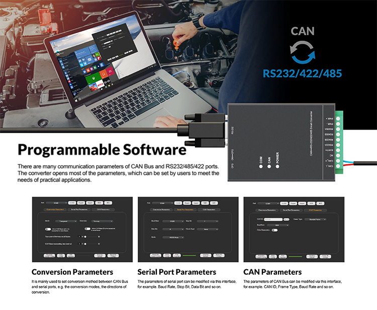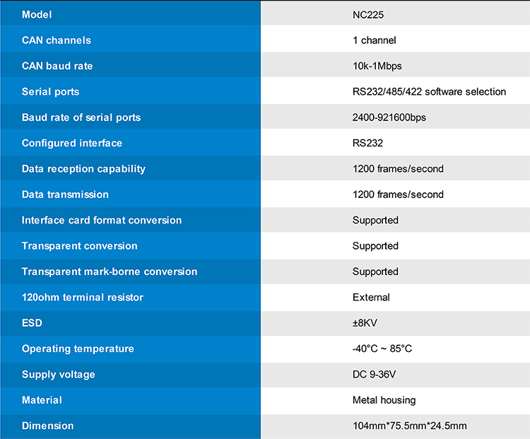 * CAN channels: 1 channel; CAN baud rate: 10k-1Mbps