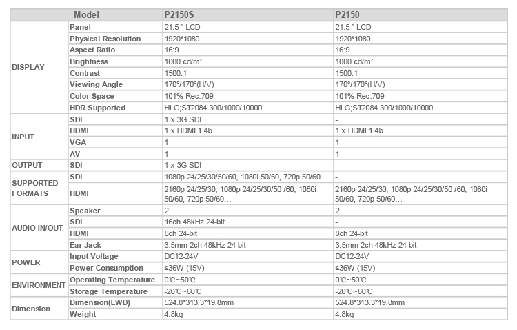 * IO: 4K HDMI/3G-SDI/VGA/Audio/Video/Earphone