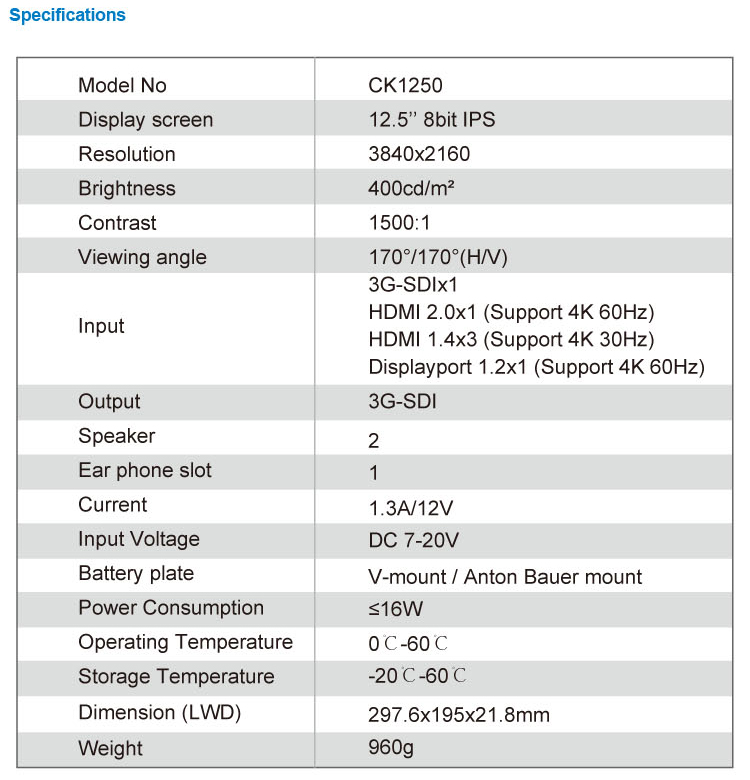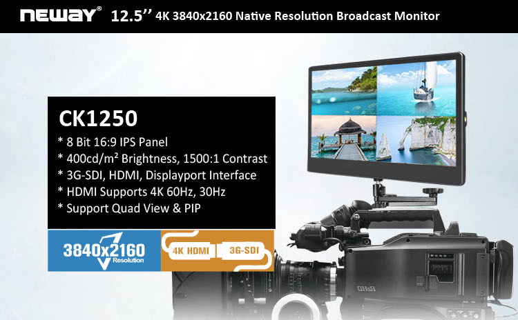 * 12.5” Native 4K 3840*2160 Broadcast Monitor