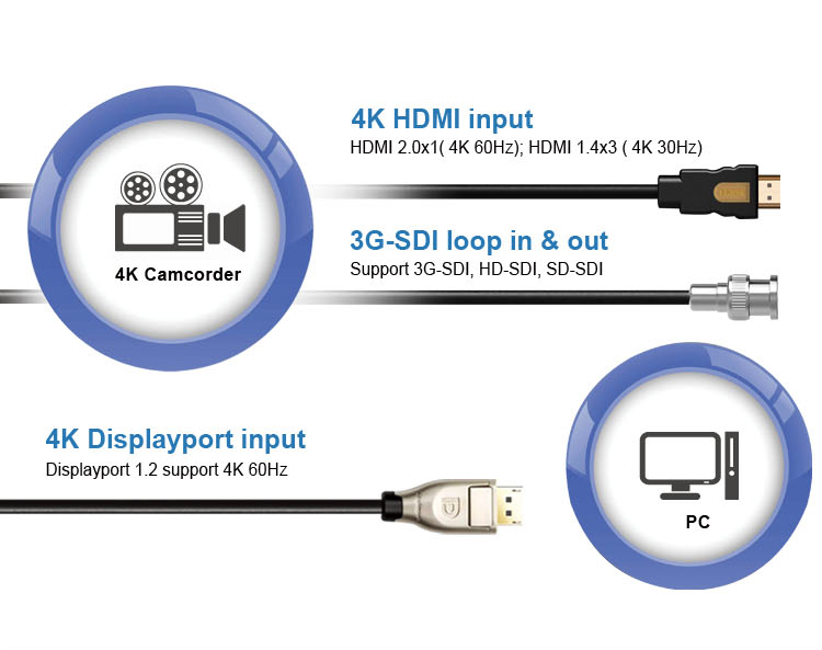 * 4K Signal Input: 4*4K HDM, 3G-SDI, 4K Display port