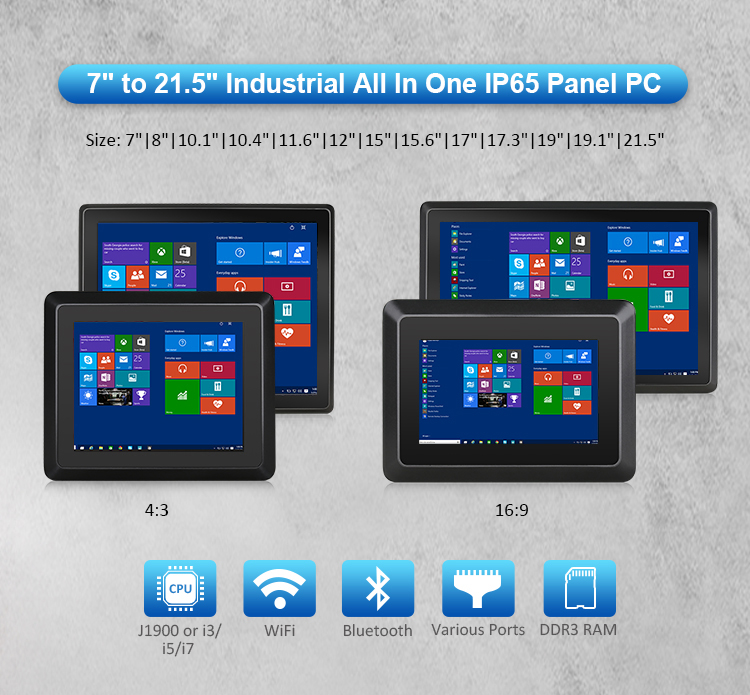• 7” to 21.5” Industrial All In One IP65 Panel PC